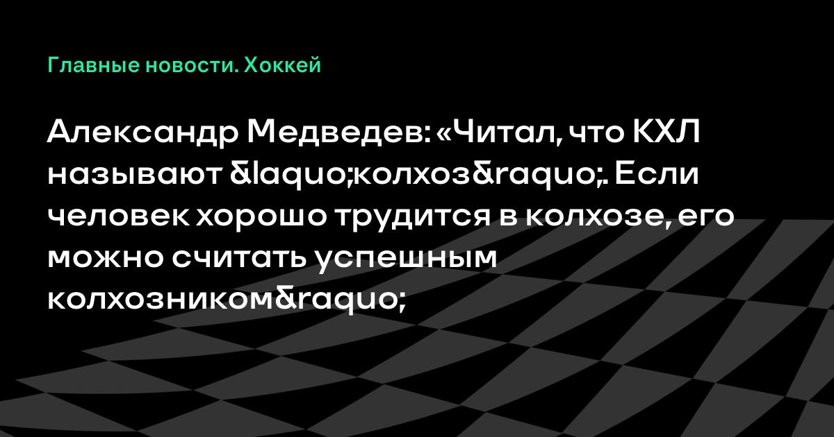 Александр Медведев: «Читал, что КХЛ называют «колхоз». Если человек хорошо трудится в колхозе, его можно считать успешным колхозником»