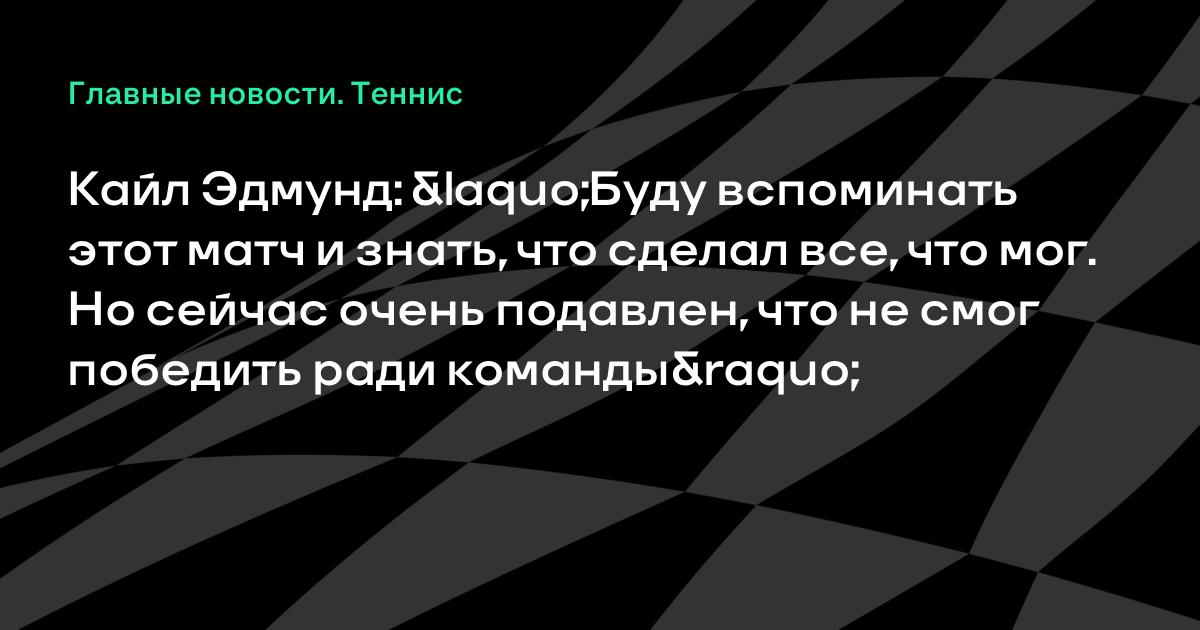 Когда играешь за страну, за товарищей по команде и проигрываешь, чувствуешь, что всех подвел. Да, потом я буду вспоминать этот матч и осознавать, что сделал все, что мог. Но сейчас я очень подавлен и расстроен, что не смог победить ради команды», – цитирует 20-летнего теннисиста официальный сайт турнира.