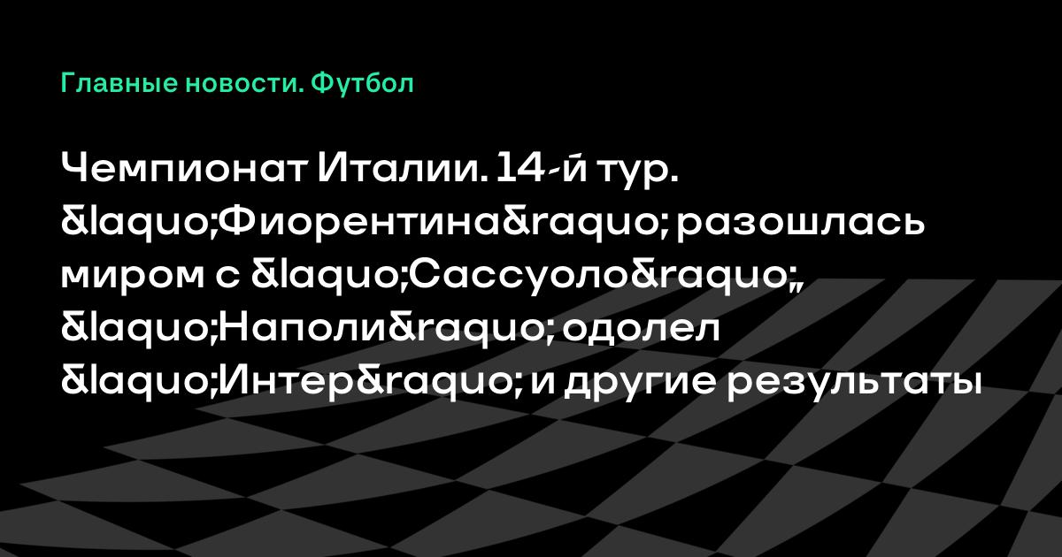 Чемпионат Италии. 14-й тур. «Фиорентина» разошлась миром с «Сассуоло», «Наполи» одолел «Интер» и другие результаты