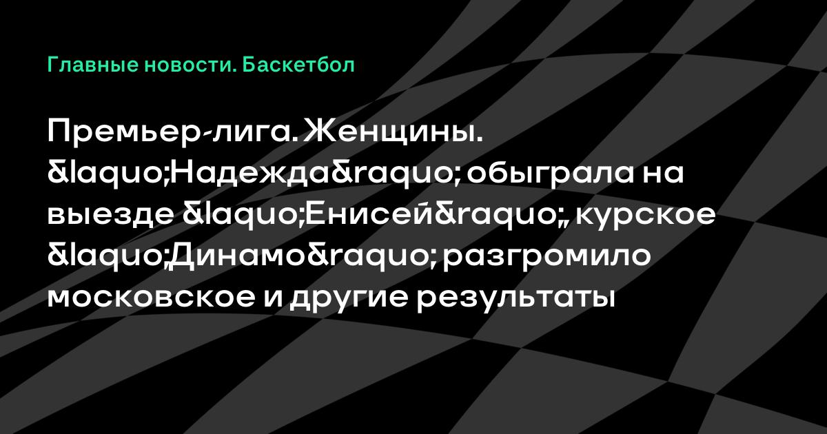 Премьер-лига. Женщины. «Надежда» обыграла на выезде «Енисей», курское «Динамо» разгромило московское и другие результаты