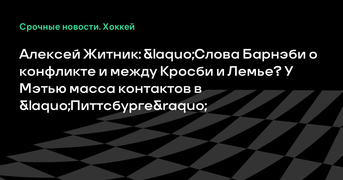 Алексей Житник: «Слова Барнэби о конфликте и между Кросби и Лемье? У Мэтью масса контактов в «Питтсбурге»