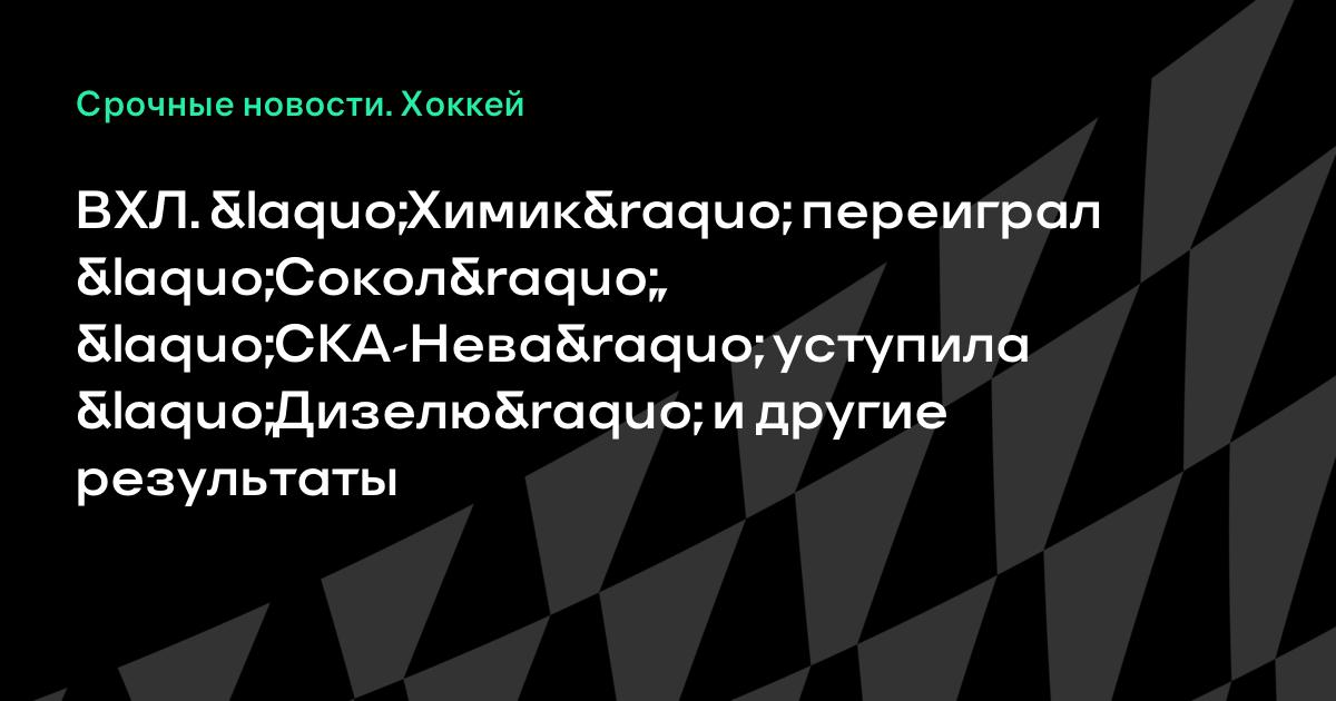 ВХЛ. «Химик» переиграл «Сокол», «СКА-Нева» уступила «Дизелю» и другие результаты