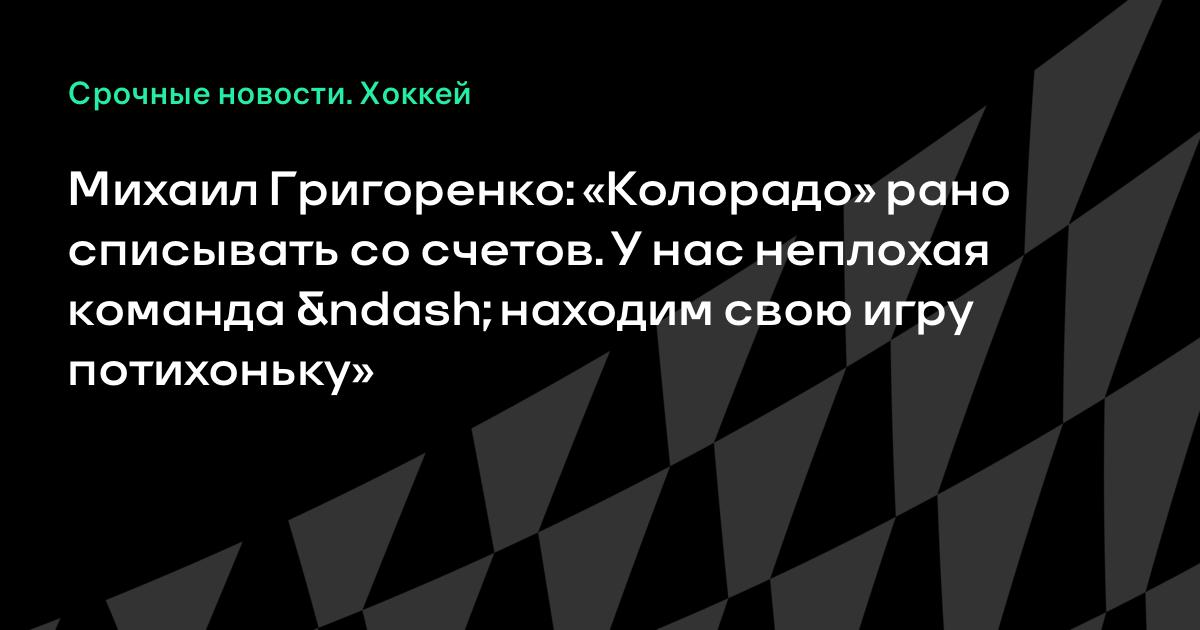 Михаил Григоренко: «Колорадо» рано списывать со счетов. У нас неплохая команда – находим свою игру потихоньку»