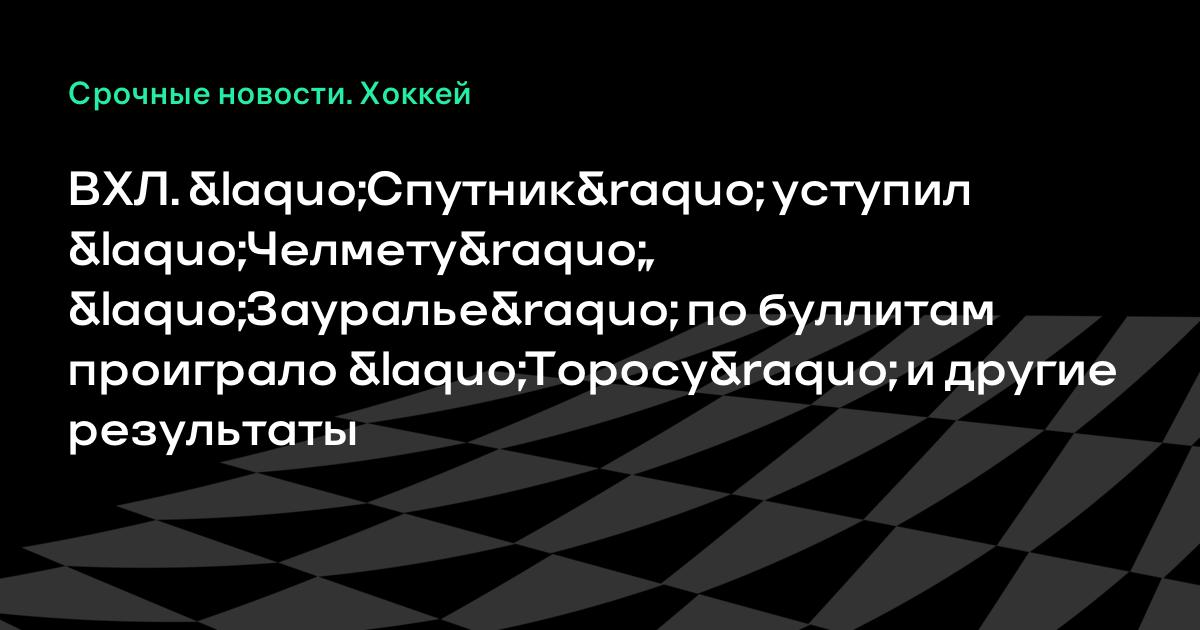 ВХЛ. «Спутник» уступил «Челмету», «Зауралье» по буллитам проиграло «Торосу» и другие результаты