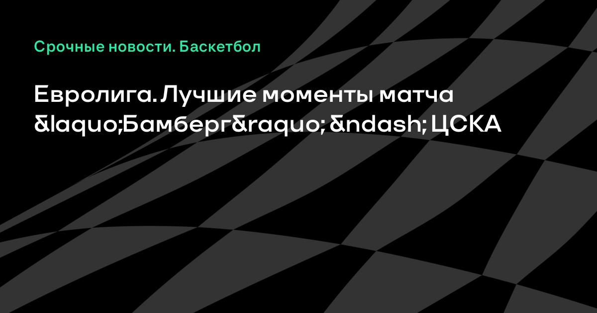 4 декабря 2015, 01:25 Евролига. Лучшие моменты матча «Бамберг» – ЦСКА Лучшие моменты матча «Бамберг» – ЦСКА (88:100) – в видеообзоре Евролиги. Источник: www.youtube.com Баскетбол ЦСКА Евролига Брозе Бамберг Баскетбол - видео