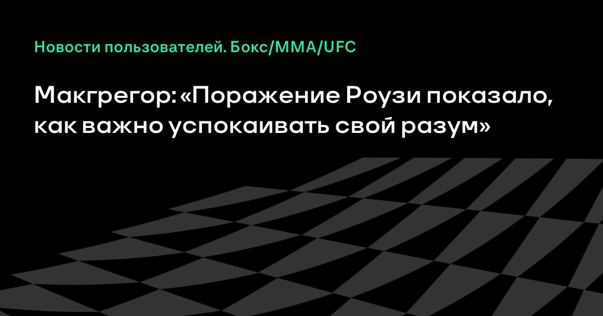 Макгрегор: «Поражение Роузи показало, как важно успокаивать свой разум»