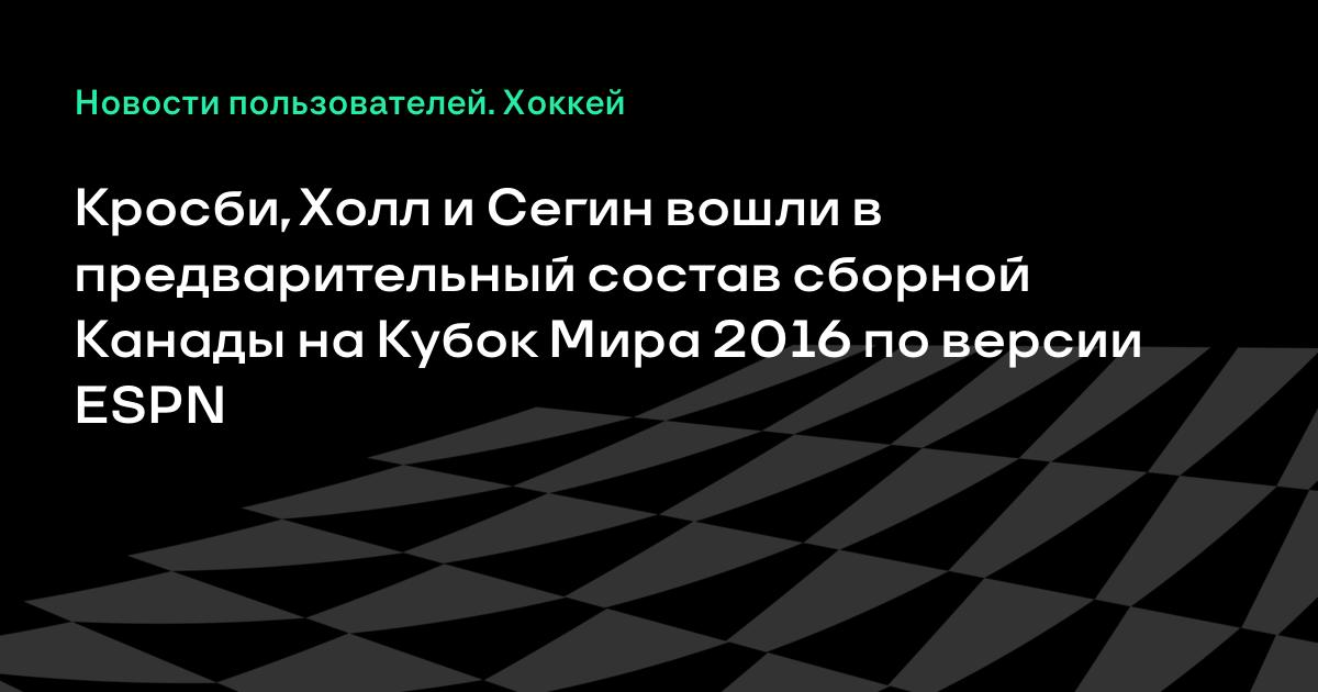 Кросби, Холл и Сегин вошли в предварительный состав сборной Канады на Кубок Мира 2016 по версии ESPN