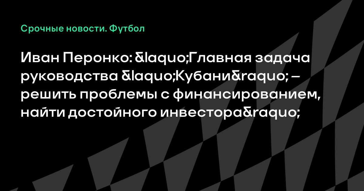 Глава федерации футбола Краснодарского края Иван Перонко рассказал о финансовых проблемах в «Кубани».
