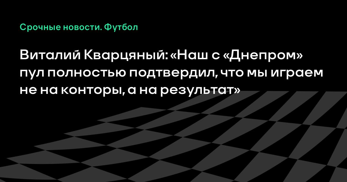Виталий Кварцяный: «Наш с «Днепром» пул полностью подтвердил, что мы играем не на конторы, а на результат»