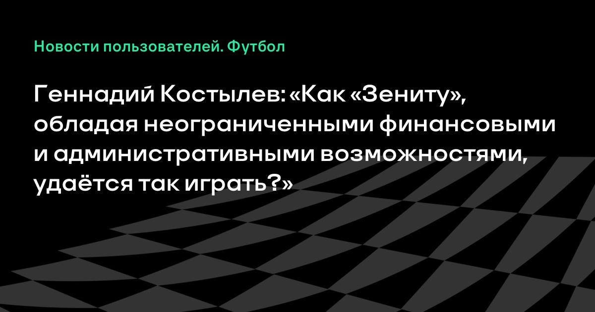 Геннадий Костылев: «Как «Зениту», обладая неограниченными финансовыми и административными возможностями, удаётся так играть?»