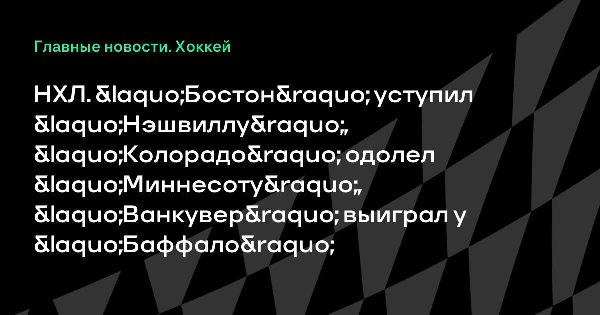 НХЛ. «Бостон» уступил «Нэшвиллу», «Колорадо» одолел «Миннесоту», «Ванкувер» выиграл у «Баффало»