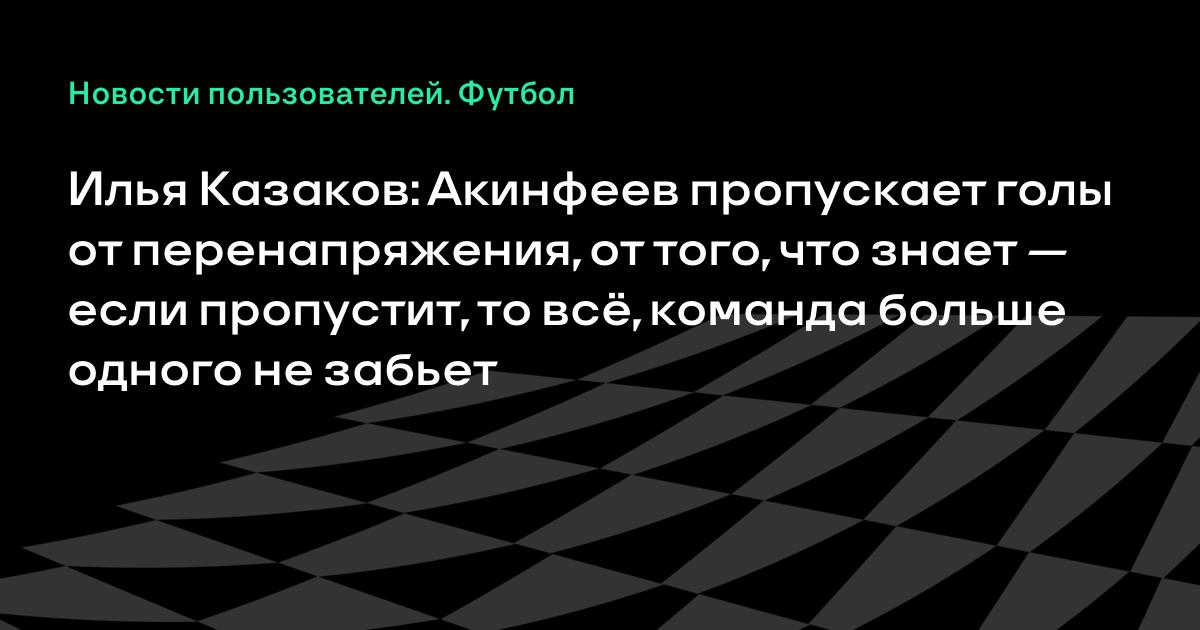 Илья Казаков: Акинфеев пропускает голы от перенапряжения, от того, что знает — если пропустит, то всё, команда больше одного не забьет