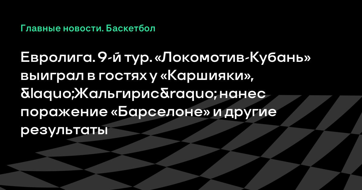 Евролига. 9-й тур. «Локомотив-Кубань» выиграл в гостях у «Каршияки», «Жальгирис» нанес поражение «Барселоне» и другие результаты