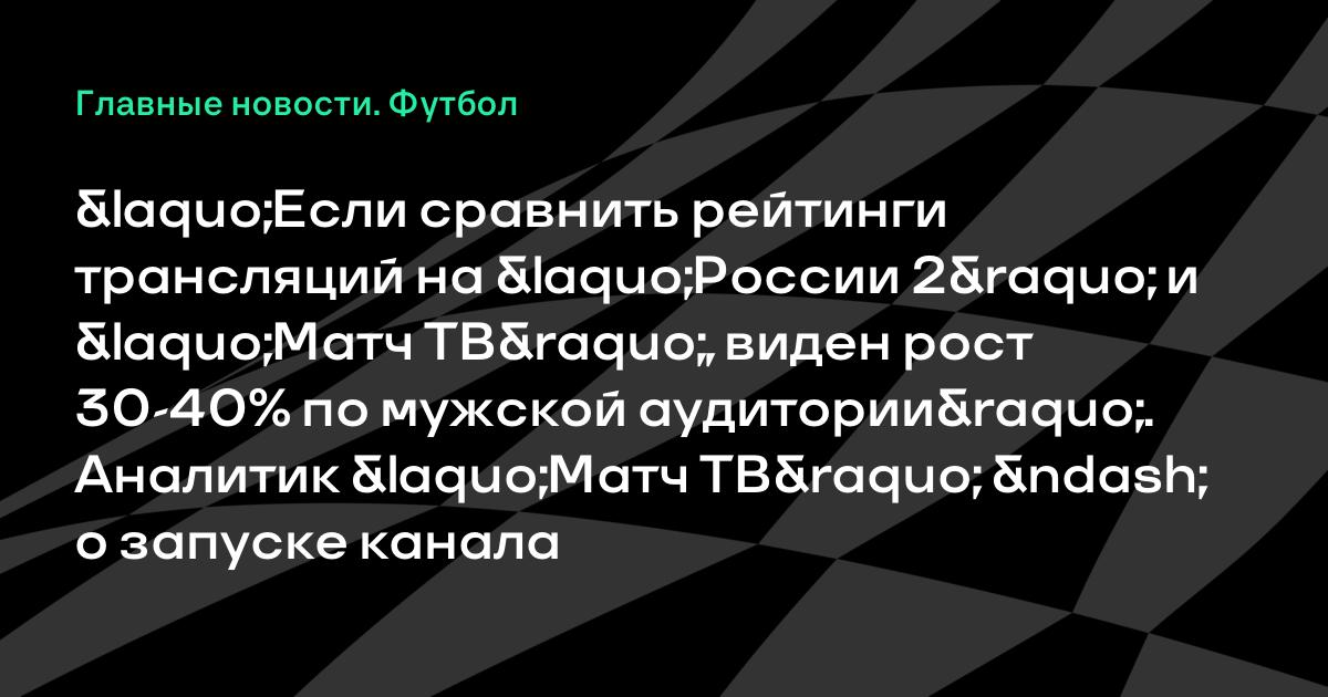 «Если сравнить рейтинги трансляций на «России 2» и «Матч ТВ», виден рост 30-40% по мужской аудитории». Аналитик «Матч ТВ» – о запуске канала