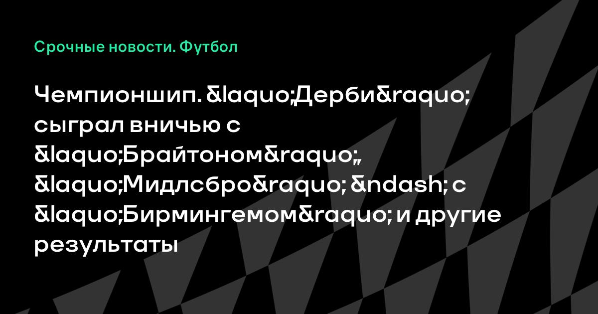 Чемпионшип. «Дерби» сыграл вничью с «Брайтоном», «Мидлсбро» – с «Бирмингемом» и другие результаты