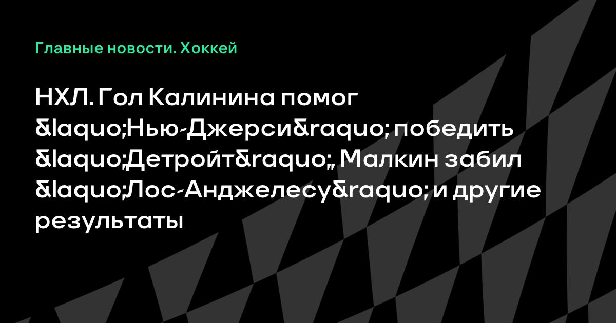 НХЛ. Гол Калинина помог «Нью-Джерси» победить «Детройт», Малкин забил «Лос-Анджелесу» и другие результаты