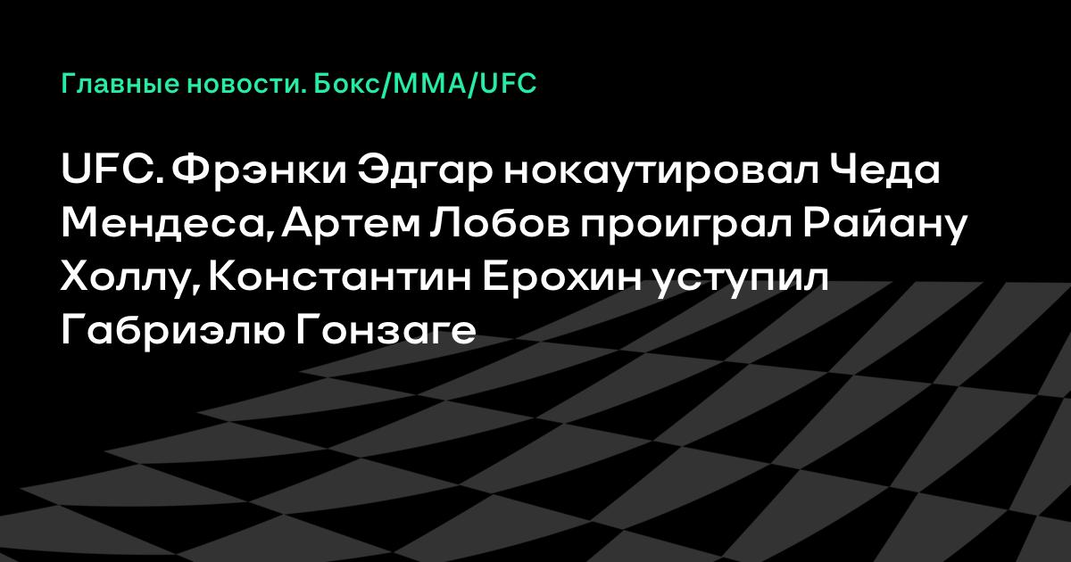 UFC. Фрэнки Эдгар нокаутировал Чеда Мендеса, Артем Лобов проиграл Райану Холлу, Константин Ерохин уступил Габриэлю Гонзаге
