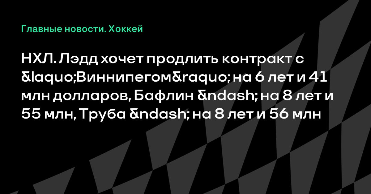 НХЛ. Лэдд хочет продлить контракт с «Виннипегом» на 6 лет и 41 млн долларов, Бафлин – на 8 лет и 55 млн, Труба – на 8 лет и 56 млн