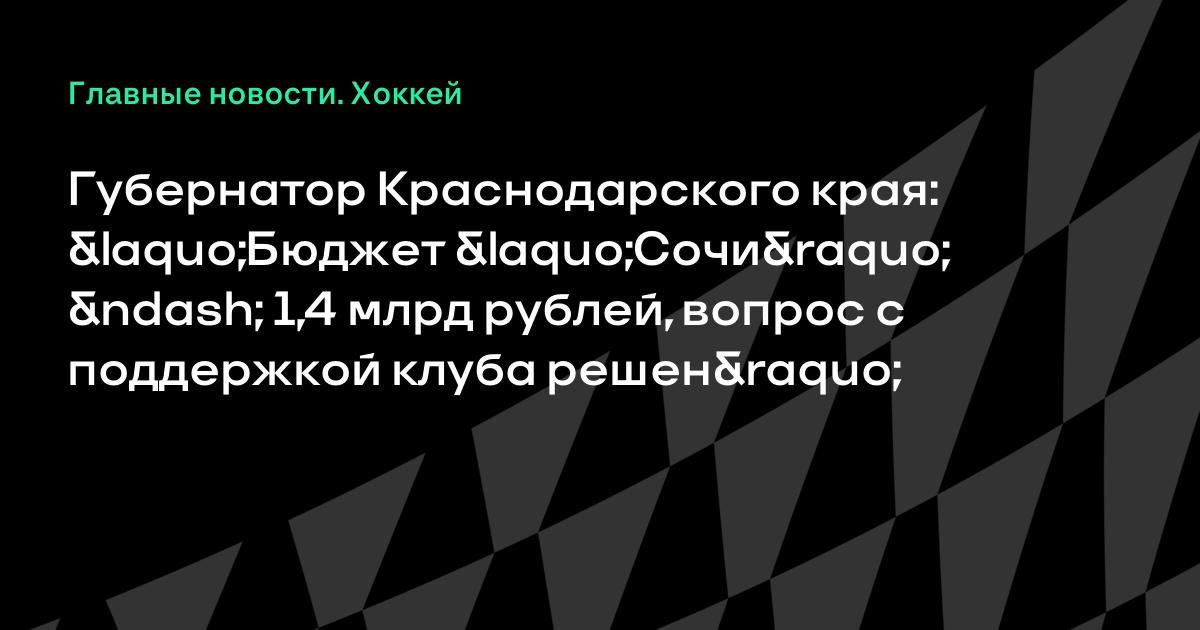 «Содержание хоккейного клуба «Сочи» ежегодно обходится в 1,4 миллиарда рублей. Больше из бюджета мы не можем финансировать эти команды. Однозначно, надо искать инвесторов.