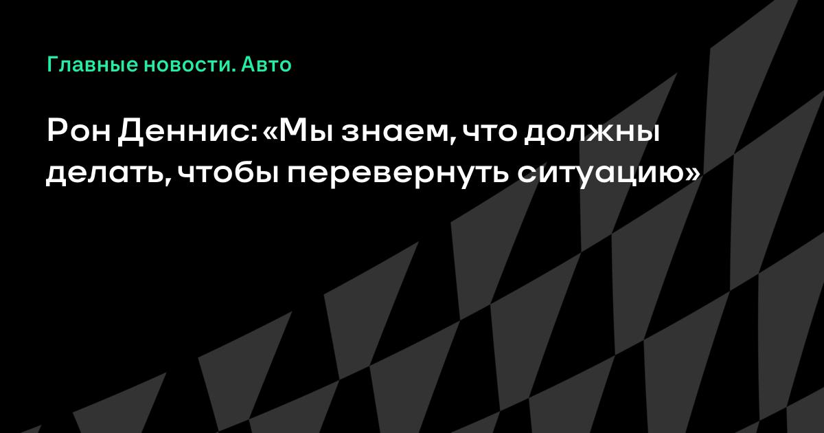 Рон Деннис: «Мы знаем, что должны делать, чтобы перевернуть ситуацию»