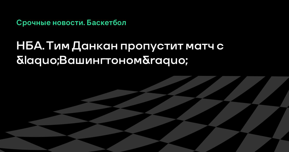 Центровой «Сан-Антонио» Тим Данкан не примет участие в сегодняшнем матче с «Вашингтоном», сообщается в официальном Твиттере клуба.