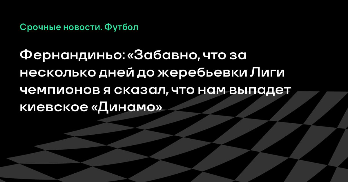 Фернандиньо: «Забавно, что за несколько дней до жеребьевки Лиги чемпионов я сказал, что нам выпадет киевское «Динамо»
