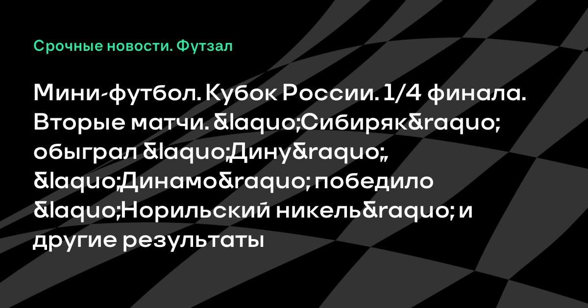 Мини-футбол. Кубок России. 1/4 финала. Вторые матчи. «Сибиряк» обыграл «Дину», «Динамо» победило «Норильский никель» и другие результаты