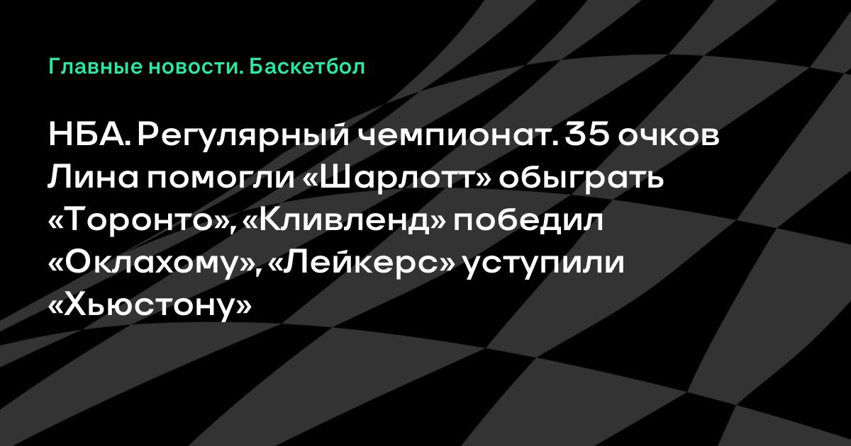 НБА. Регулярный чемпионат. 35 очков Лина помогли «Шарлотт» обыграть «Торонто», «Кливленд» победил «Оклахому», «Лейкерс» уступили «Хьюстону»