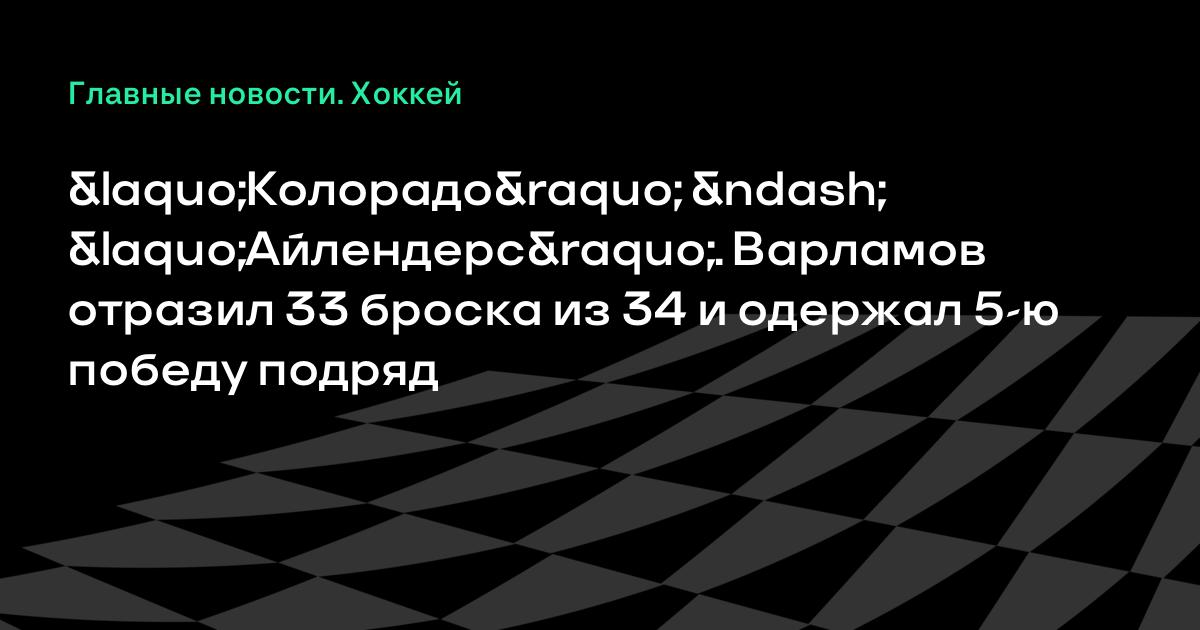 «Колорадо» – «Айлендерс». Варламов отразил 33 броска из 34 и одержал 5-ю победу подряд