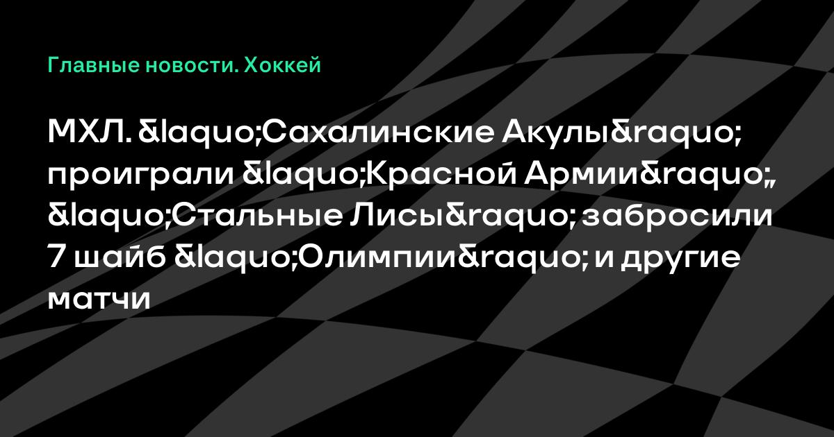 МХЛ. «Сахалинские Акулы» проиграли «Красной Армии», «Стальные Лисы» забросили 7 шайб «Олимпии» и другие матчи