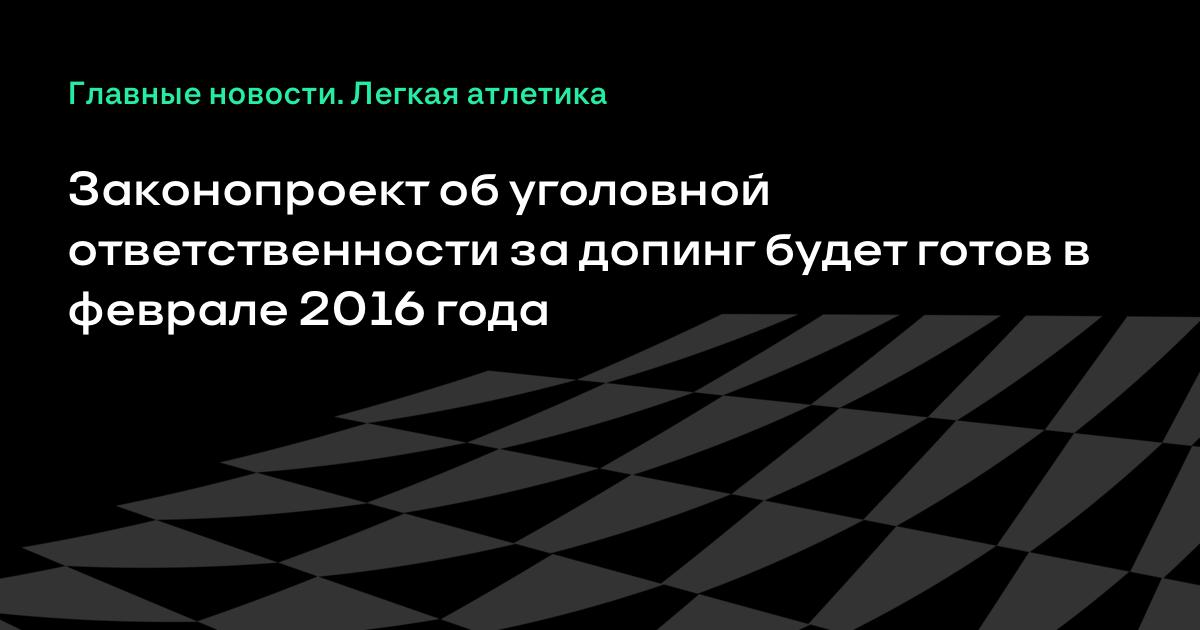 Президент Национального объединения спортивных юристов России Сергей Алексеев сообщил, что к февралю 2016 года будет готов законопроект о введении уголовной ответственности за допинговые нарушения в спорте.