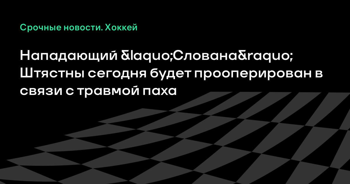 Форвард «Слована» Андрей Штястны сегодня будет прооперирован в клинике в Мюнхене, сообщается в твиттере клуба.