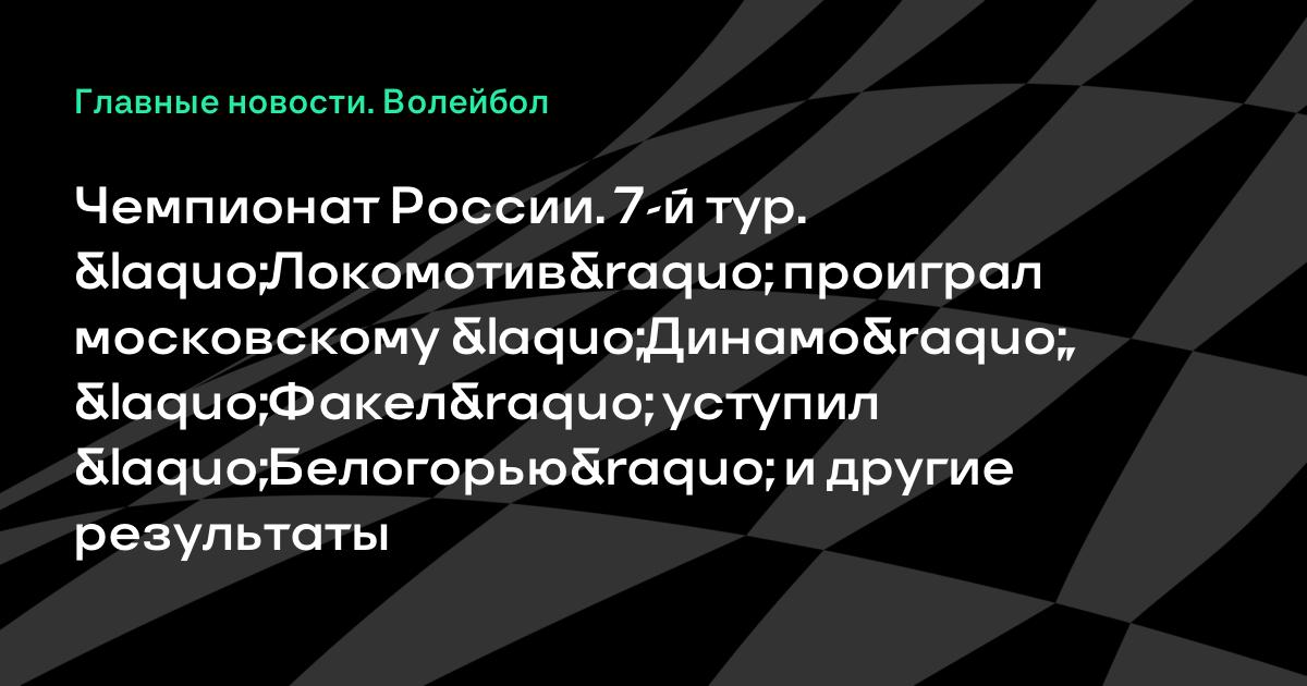 Сегодня прошли матчи 7-го тура мужского чемпионата России по волейболу. «Локомотив» проиграл московскому «Динамо»(1-3), «Факел» уступил «Белогорью» (1-3).