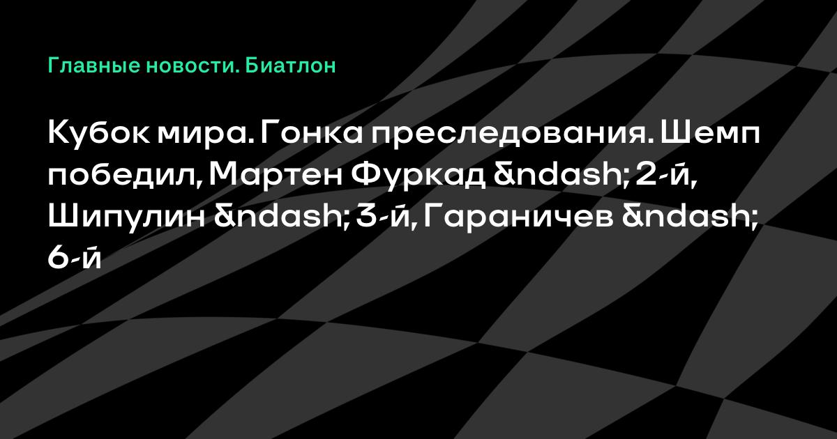 Кубок мира. Гонка преследования. Шемп победил, Мартен Фуркад – 2-й, Шипулин – 3-й, Гараничев – 6-й