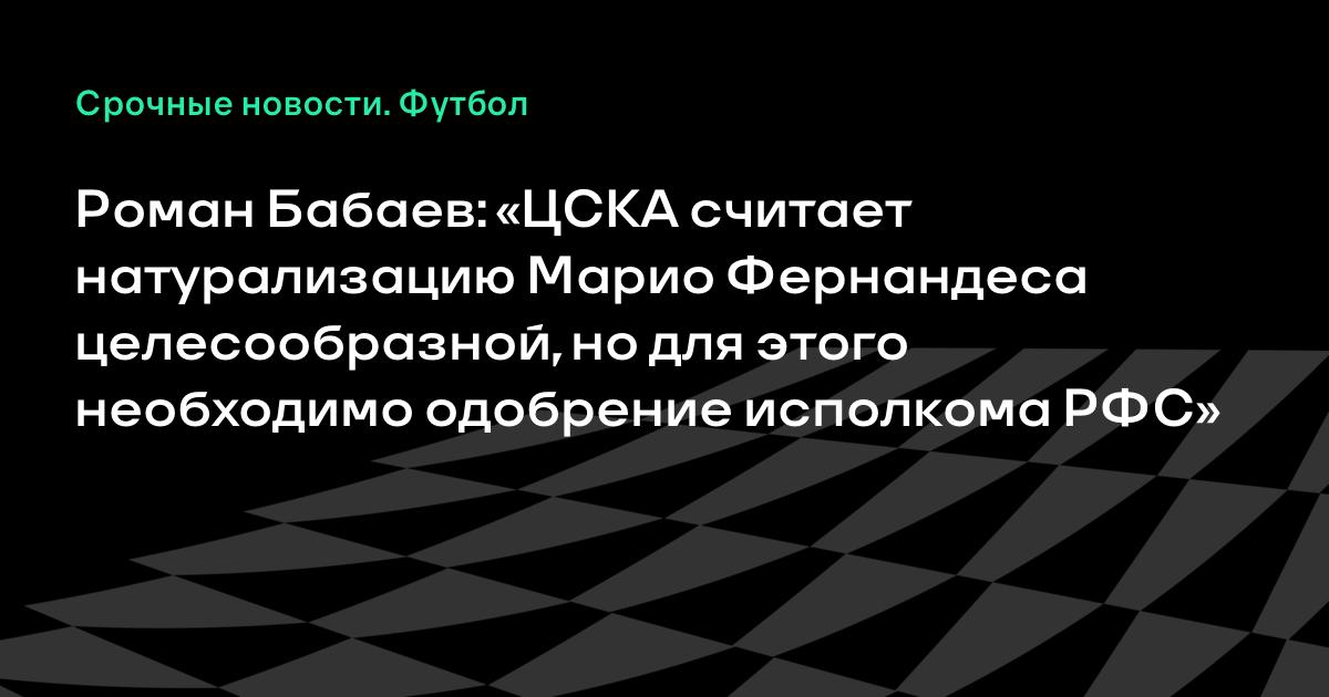 Генеральный директор ЦСКА Роман Бабаев высказался относительно возможной натурализации защитника Марио Фернандеса, рассматриваемого в качестве кандидата в сборную России.