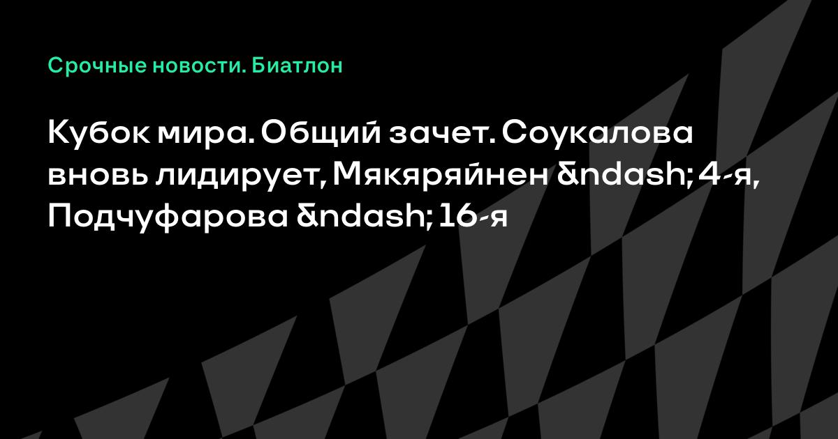 Кубок мира. Общий зачет. Соукалова вновь лидирует, Мякяряйнен – 4-я, Подчуфарова – 16-я