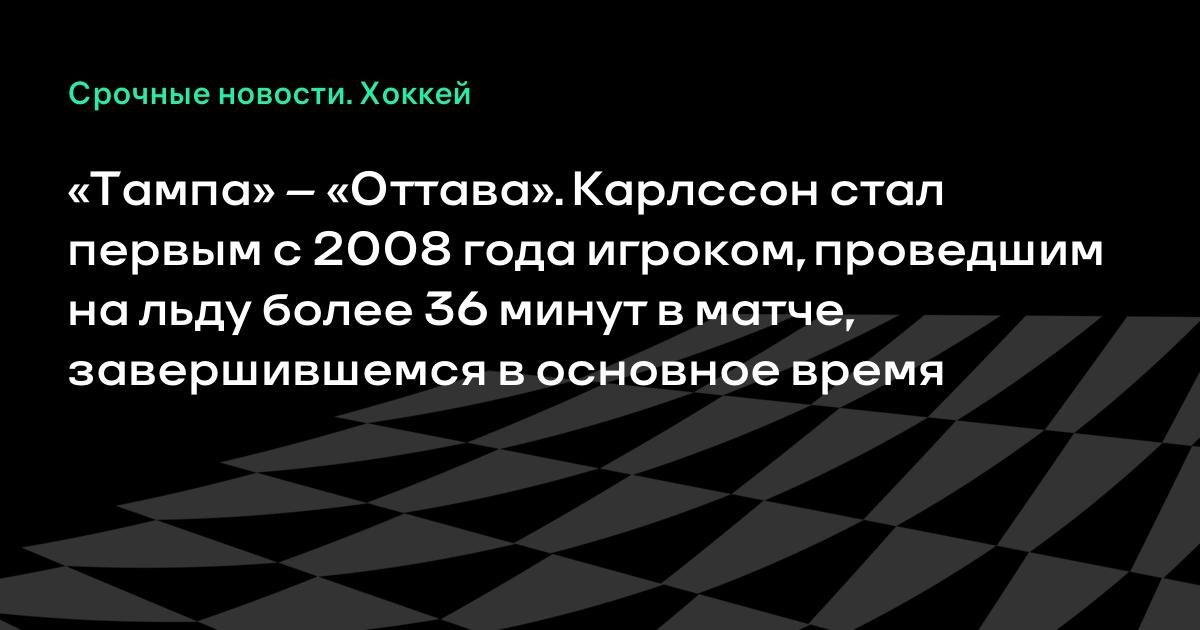 «Тампа» – «Оттава». Карлссон стал первым с 2008 года игроком, проведшим на льду более 36 минут в матче, завершившемся в основное время