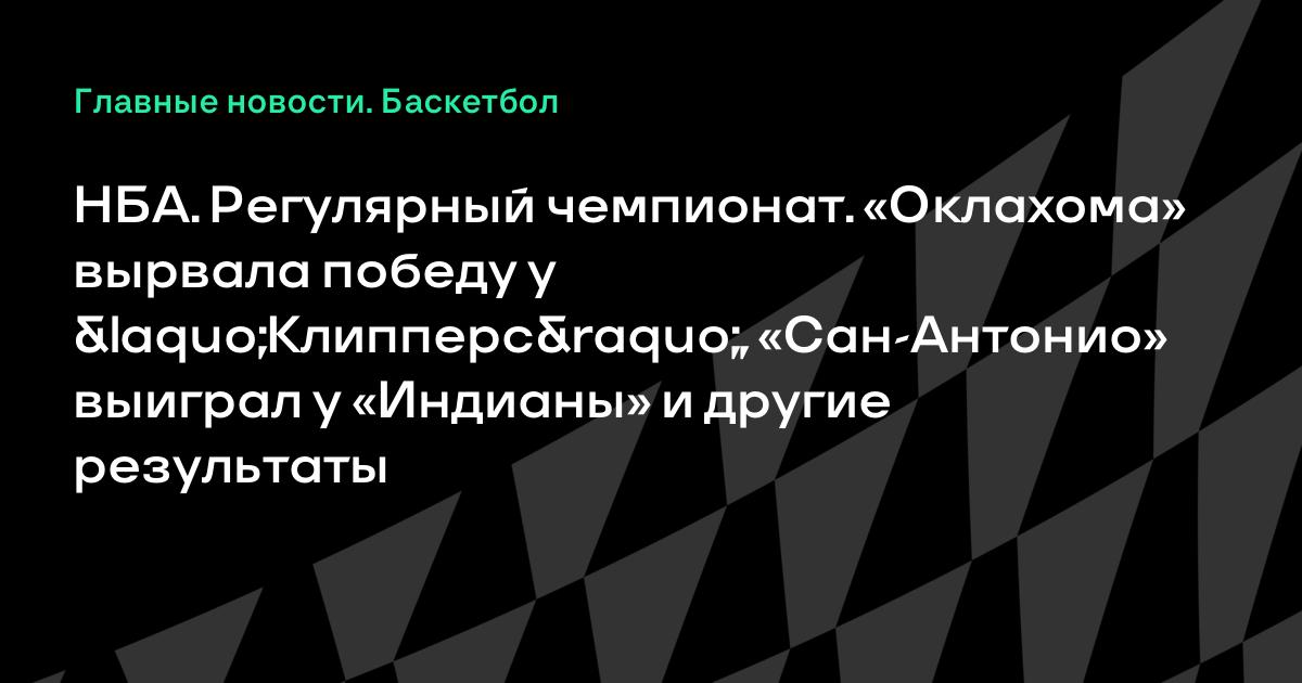 НБА. Регулярный чемпионат. «Оклахома» вырвала победу у «Клипперс», «Сан-Антонио» выиграл у «Индианы» и другие результаты