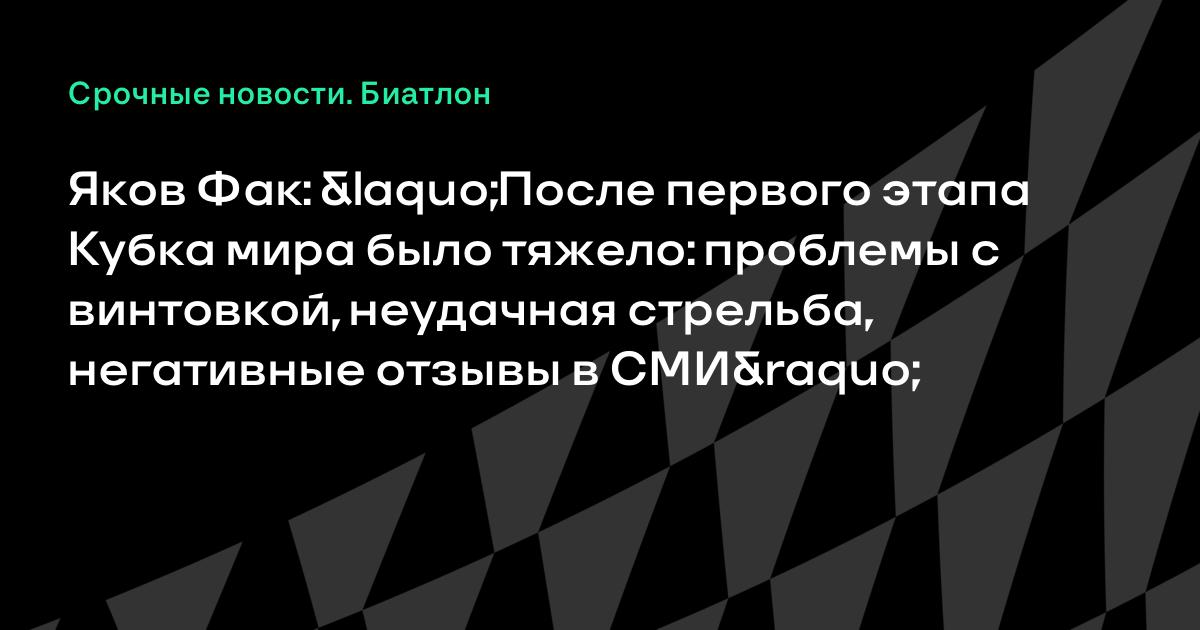Яков Фак: «После первого этапа Кубка мира было тяжело: проблемы с винтовкой, неудачная стрельба, негативные отзывы в СМИ»