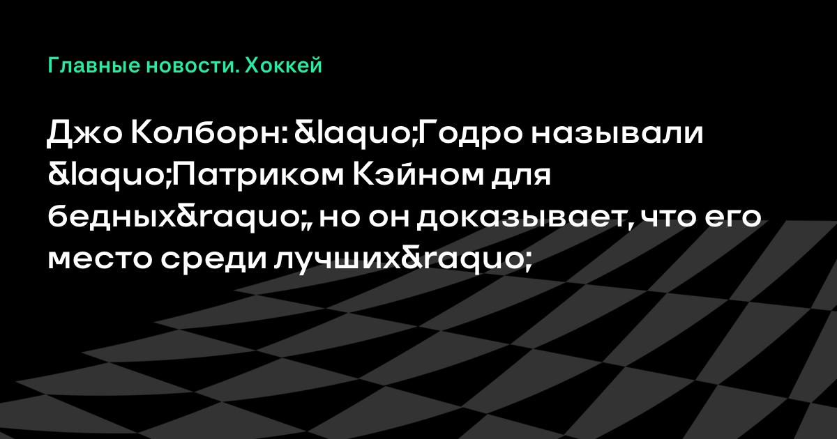 Его называли «Патриком Кэйном для бедных», но он доказывает, что его место среди лучших игроков НХЛ. Мы видим его каждый день, и он никогда не перестает нас удивлять», – сказал Колборн.