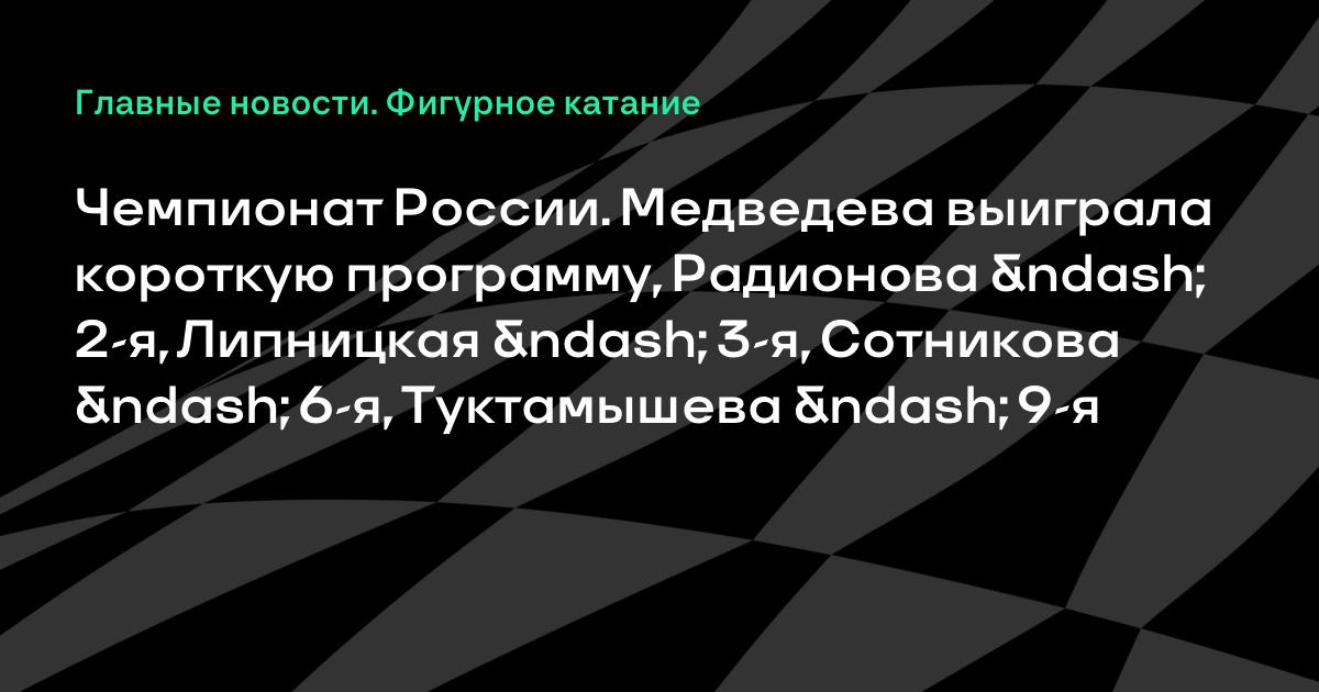 Чемпионат России. Медведева выиграла короткую программу, Радионова – 2-я, Липницкая – 3-я, Сотникова – 6-я, Туктамышева – 9-я