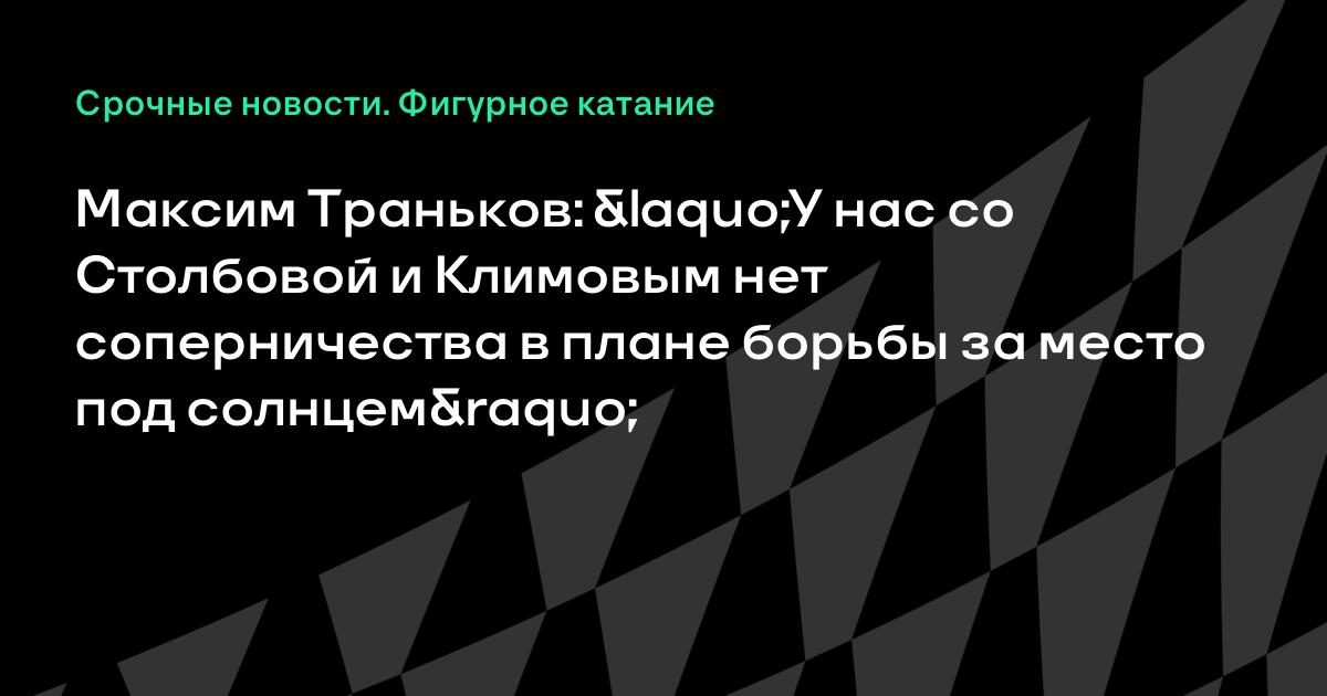 Двукратный олимпийский чемпион Максим Траньков, выступающий в паре с Татьяной Волосожар, после короткой программы на чемпионате России рассказал о том, как относится к соперничеству с Ксенией Столбовой и Федором Климовым.