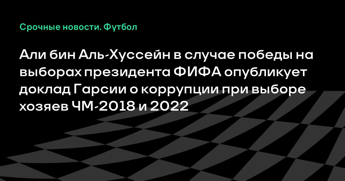 Иорданский принц Али бин Аль-Хуссейн, претендующий на пост президента ФИФА, в случае своей победы на выборах планирует полностью опубликовать отчет следователя Майкла Гарсии по поводу выборов стран-хозяек ЧМ-2018 и 2022.