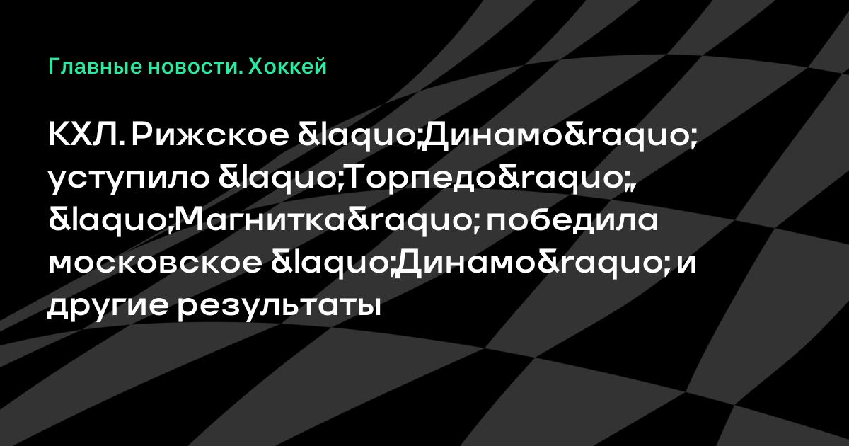 КХЛ. Рижское «Динамо» уступило «Торпедо», «Магнитка» победила московское «Динамо» и другие результаты