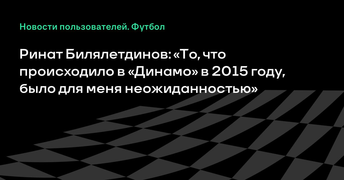 Ринат Билялетдинов: «То, что происходило в «Динамо» в 2015 году, было для меня неожиданностью»