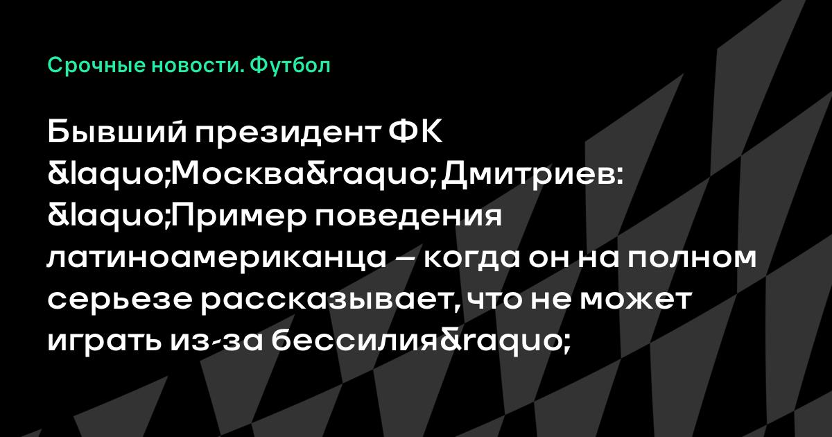 Бывший президент ФК «Москва» Дмитриев: «Пример поведения латиноамериканца – когда он на полном серьезе рассказывает, что не может играть из-за бессилия»