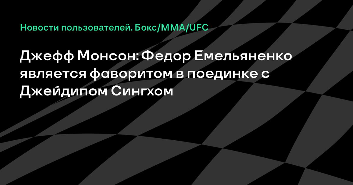 Известный боец смешанного стиля Джефф Монсон считает россиянина Федора Емельяненко фаворитом в его первом поединке после возобновления карьеры против индийца Джейдипа Сингха. Такое мнение Монсон высказал ТАСС. «Сингх — отличный кикбоксер. Федор же гармоничен во всем. Джейдип — хороший боец, но я не собираюсь ставить против Федора», — сказал он. В середине июля самый известный российский боец по прозвищу «Последний император» объявил о возобновлении карьеры. Его соперником в бою 31 декабря станет индиец Джейдип Сингх. 28-летний Сингх, специализирующийся в кикбоксинге (40 побед в 51 бою), будет соперником Емельяненко по новогоднему бою, который состоится 31 декабря в организации Rizin FF в Токио. В официальных боях по правилам ММА индиец принимал участие дважды, и оба раза одержал победу досрочно. В 2010 году Сингх победил россиянина Сергея Харитонова в бою по правилам кикбоксинга. На профессиональном ринге Емельяненко провел 38 боев, одержав 34 победы (27 — досрочно) и потерпев четыре поражения. Один поединок с участием российского спортсмена признан несостоявшимся. 39-летний Емельяненко является четырехкратным чемпионом мира по смешанным единоборствам в тяжелом весе по версии японской организации «Прайд», а также четырехкратным чемпионом мира по боевому самбо.