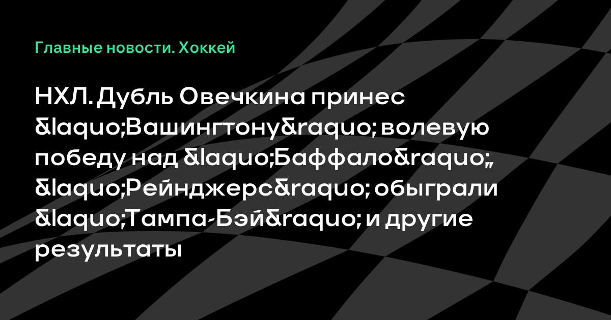 НХЛ. Дубль Овечкина принес «Вашингтону» волевую победу над «Баффало», «Рейнджерс» обыграли «Тампа-Бэй» и другие результаты