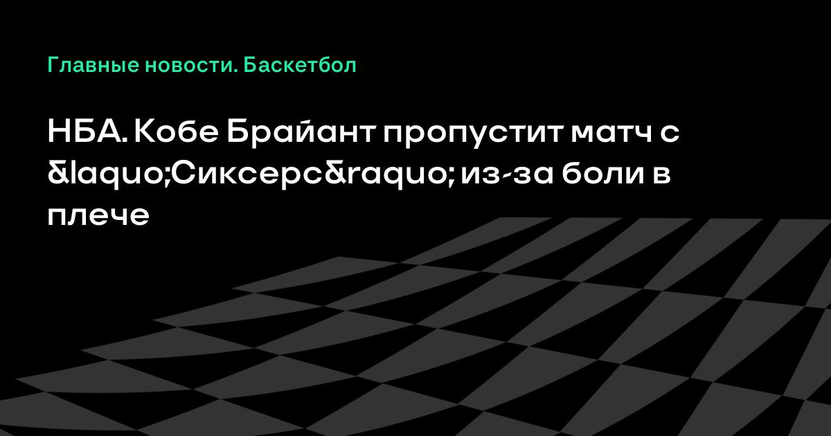 Защитник «Лейкерс» Кобе Брайант пропустит пятничный матч с «Филадельфией» из-за боли в правом плече, сообщает инсайдер ESPN Бакстер Холмс.