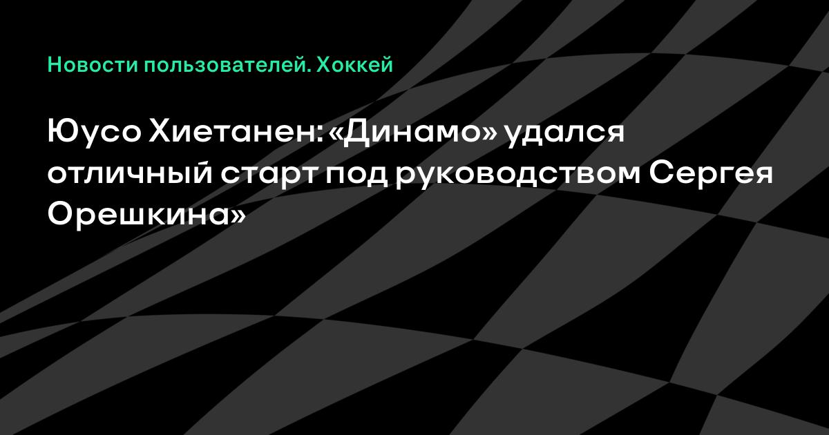 Юусо Хиетанен: «Динамо» удался отличный старт под руководством Сергея Орешкина»